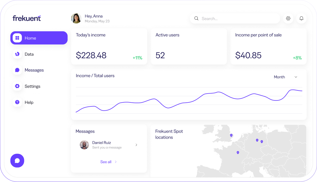 Finance: Track the expenses and sales of your Frekuent Spots and see if your business is meeting its goals.